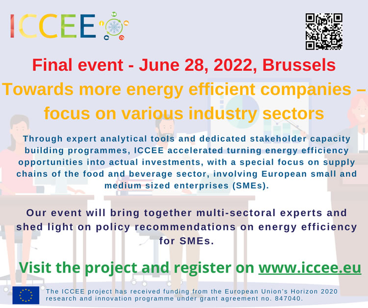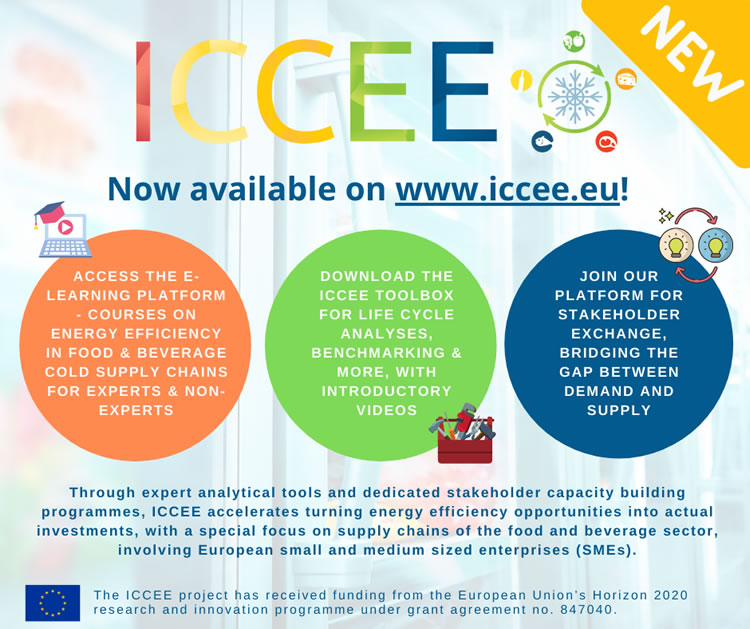 Proiectul ICCEE (Improving Cold Chain Energy Efficiency iccee.eu ), finanțat prin Programul HORIZON 2020 al UE, vizează îmbunătățirea eficienței energetice în lanțul de frig al sectorului alimentar și facilitarea desprinderii de către sector a unor măsuri de eficiență energetică în întregul lanț de aprovizionare, pentru a accelera implementarea rezultatelor auditului energetic, urmând o abordare holistică care trece de la o perspectivă singulară a companiei la evaluarea întregului lanț de aprovizionare.
